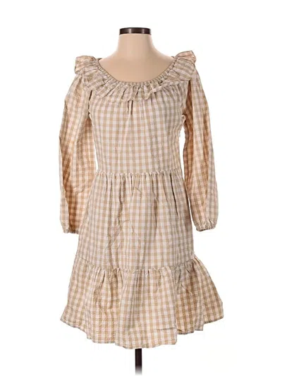 J.Crew Factory Store Casual Dress, Size: 0. Item Details: Tan, Checkered/Gingham Pattern, Popover, Ruffles Neckline, Short Length, Long Sleeve, Women's Dresses, 100% Cotton