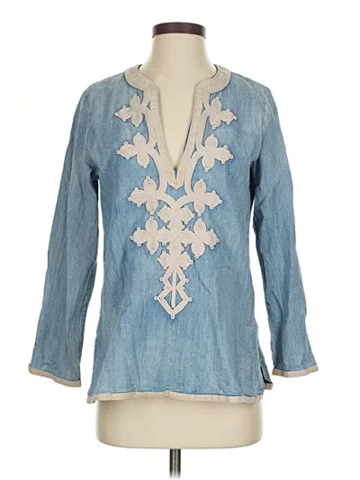 J.Crew Long Sleeve Blouse, Size: 4. Item Details: Blue, Plunge Neckline, Embroidered, Women's Tops, 100% Cotton
