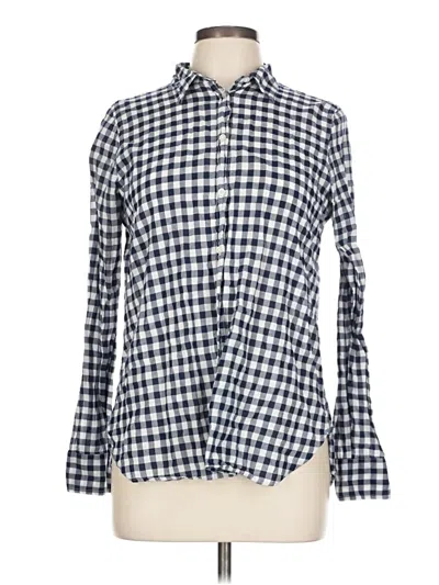 J.Crew Long Sleeve Button Down Shirt, Size: 10. Item Details: Blue, Checkered/Gingham Pattern, Square Neckline, Flannel, Women's Tops, Cotton/Elastane
