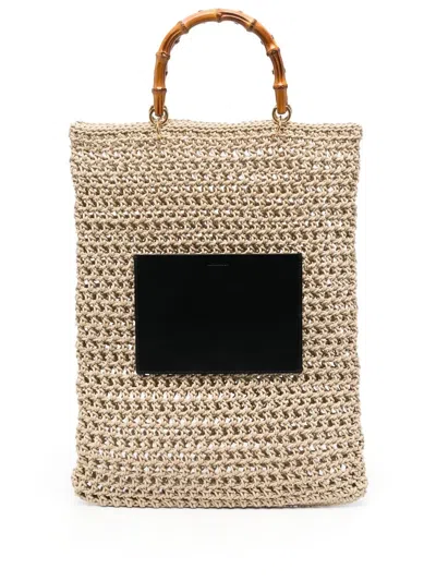 JIL SANDER Leather-trimmed Crochet Tote In Neutral