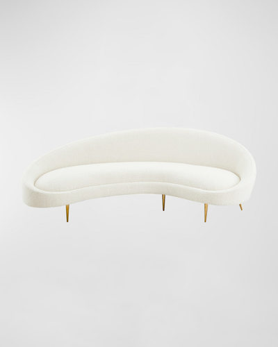 Curved velvet sofa. Brass legs. 94"W x 52"D x 32"T. Seat height, 17". Imported. Boxed weight, approximately 100 lbs.