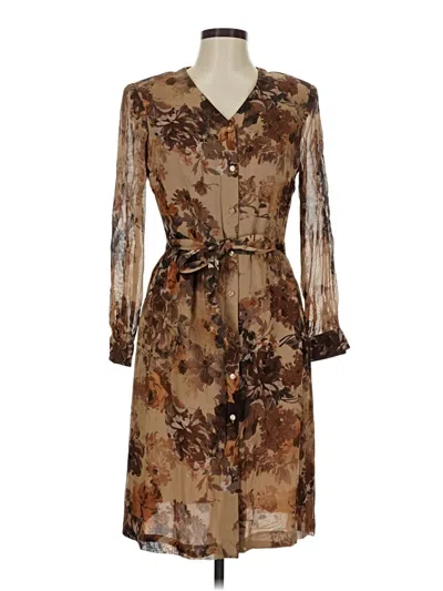 Kasper Cocktail Dress, Size: 8. Item Details: Brown, Print Pattern, Wrap, Tie Neck, Knee Length, 3/4 Sleeve, Women's Dresses, 100% Polyester