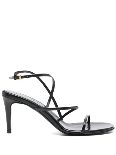 black buckle-fastening ankle strap mid tapered heel multi-way straps leather sole