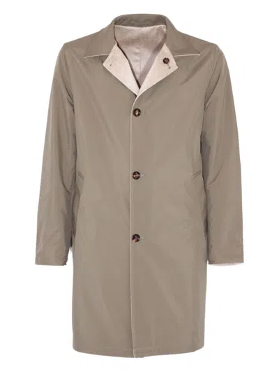 米色 钮扣 尖领 长袖 平袋 平直下摆