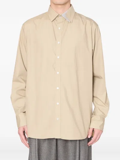 米色 长袖 钮扣 胸袋 对比领 平直下摆