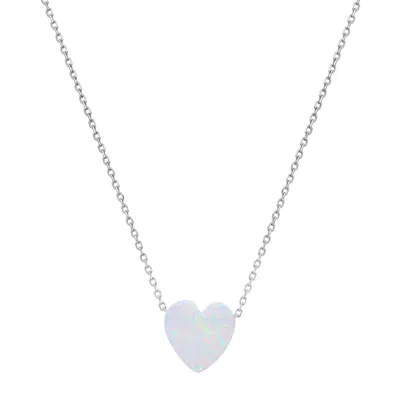 Sterling Silver Opal Heart Necklace In Silver-tone