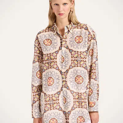 About The Brand:We'll go ahead and say it - this just might be the perfect shirt. One that's tailored in all the right places but still oversized enough to feel effortlessly laid back. One for vintage queens in this glorious Jive print, this beauty pops with pretty much anything - your favourite pair of jeans, a printed Pencil Skirt, over a bathing suit, or nothing at all! Oh, and this new silk cotton fabrication is officially all we want to feel against our skin this summer.