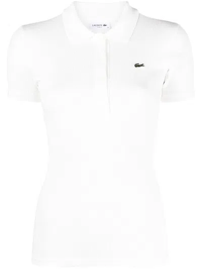 logo-patch cotton polo shirt from LACOSTE featuring white, cotton, logo patch at the chest, fine ribbed, polo collar, front button placket, short sleeves and straight hem.