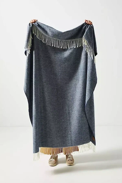 LANDS DOWNUNDER Solid Herringbone Throw Blanket In Blue