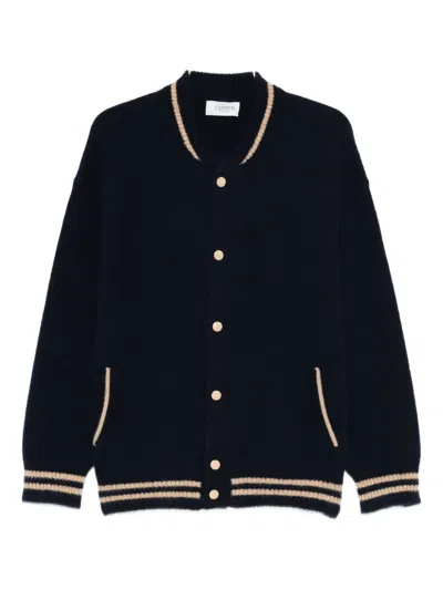 Bomber Jacket in blue cashmere, bomber collar, press buttons closure, side pockets, ribbed cuffs and bottom, 71% cashmere, 19% silk, 10% poliestere, Made in Italy