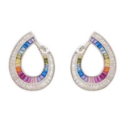 Women's Sweeping Rainbow Hoop Earrings Silver In Multi