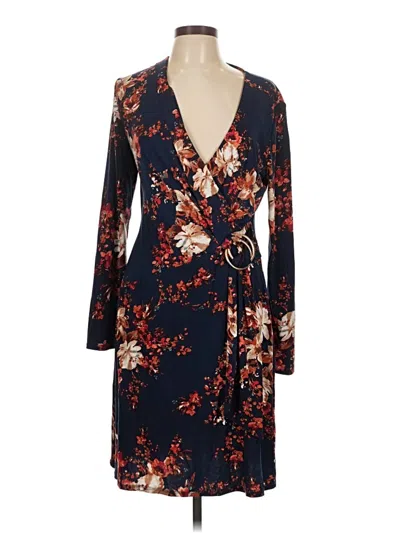 Laundry by Shelli Segal Casual Dress, Size: Large. Item Details: Blue, Floral Pattern, Wrap, Plunge Neckline, Short Length, Long Sleeve, Women's Dresses, Polyester/Elastane