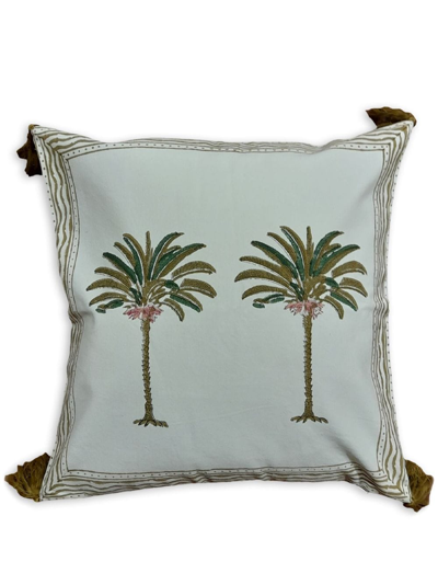 浅蓝色、多色、棉、棕榈树印花、方形。