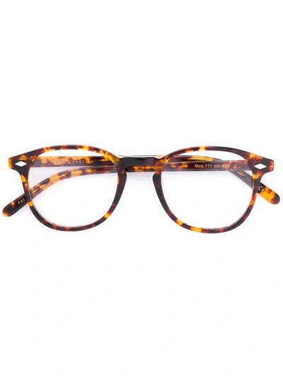 Tortoiseshell round-frame glasses from Lesca. This item comes with a protective case. This item is unisex.