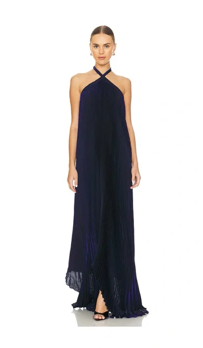 L'IDEE DEESSE 长裙 – Midnight Shimmer - Navy. 尺码 8/S (also – 10/M, 12/L, 6/XS). 100% 聚酯. 印度尼西亚制造. Hand wash. 无衬里设计. 隐藏后拉链闭合配挂脖系带. 打褶泡泡纱面料. LIDR-WD136. DEESSE GOWN.