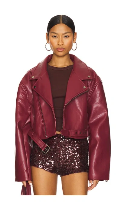LIONESS STATEN ISLAND 夹克 – 深紫红 - Burgundy. 尺码 M (also – L, S, XS). 55%, 45% 聚酯. 中国制造. Hand wash. 前身暴露式拉链束缚设计. 侧边拉链口袋. Belt-buckle at waist. 拉链袖口. 人造革面料. LIOR-WO53. LC172-13-2403.