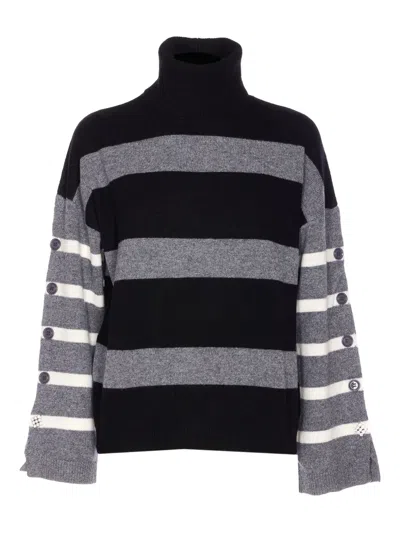 Liu jo black and grey striped sweater high waist long sleeves buttons on shoulder Designer colour name: grey