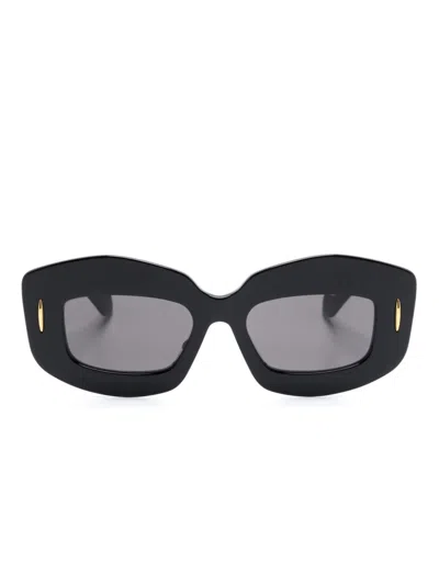 black acetate geometric frame UV-protective grey-tinted lenses signature Anagram plaque sculpted arms curved tips gold-tone hardware These glasses come with a protective case.