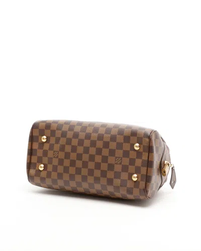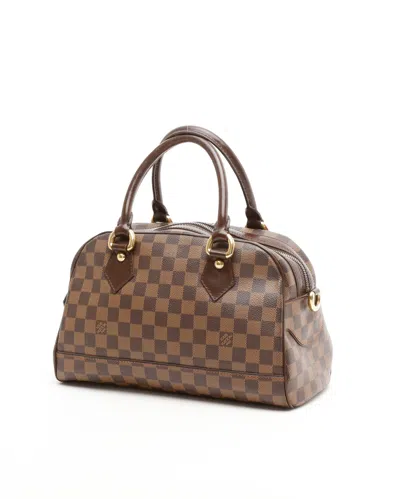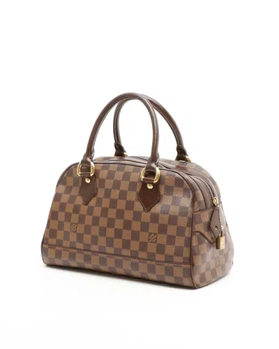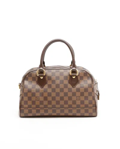 Louis Vuitton Damier Ebene Duomo Bag• Damier Ebene coated canvas with brown leather trim• Gold-toned hardware• Dual rolled leather handles• Red textile lining with an internal pocket• Zip-top closure• VintageOverall Preloved Condition: Very Good Condition.Exterior Condition: Very Good. Light trace of use.Interior Condition: Very Good. Light trace of use.Hardware: Shiny with light scratches.Delivered with padlockMade in FranceDimensions:Height 19 cmWidth 29 cmDepth 16 cmHandle drop 20 cmPlease note that the majority of our items are vintage and therefore have tales to tell unless stated otherwise. Therefore, please look at pictures, descriptions and measurements provided as they give you the best idea of the story this item has to tell.