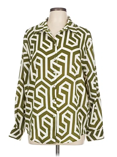 Lu Bella Long Sleeve Blouse, Size: Large. Item Details: Green, Print Pattern, Square Neckline, Women's Tops, 100% Polyester