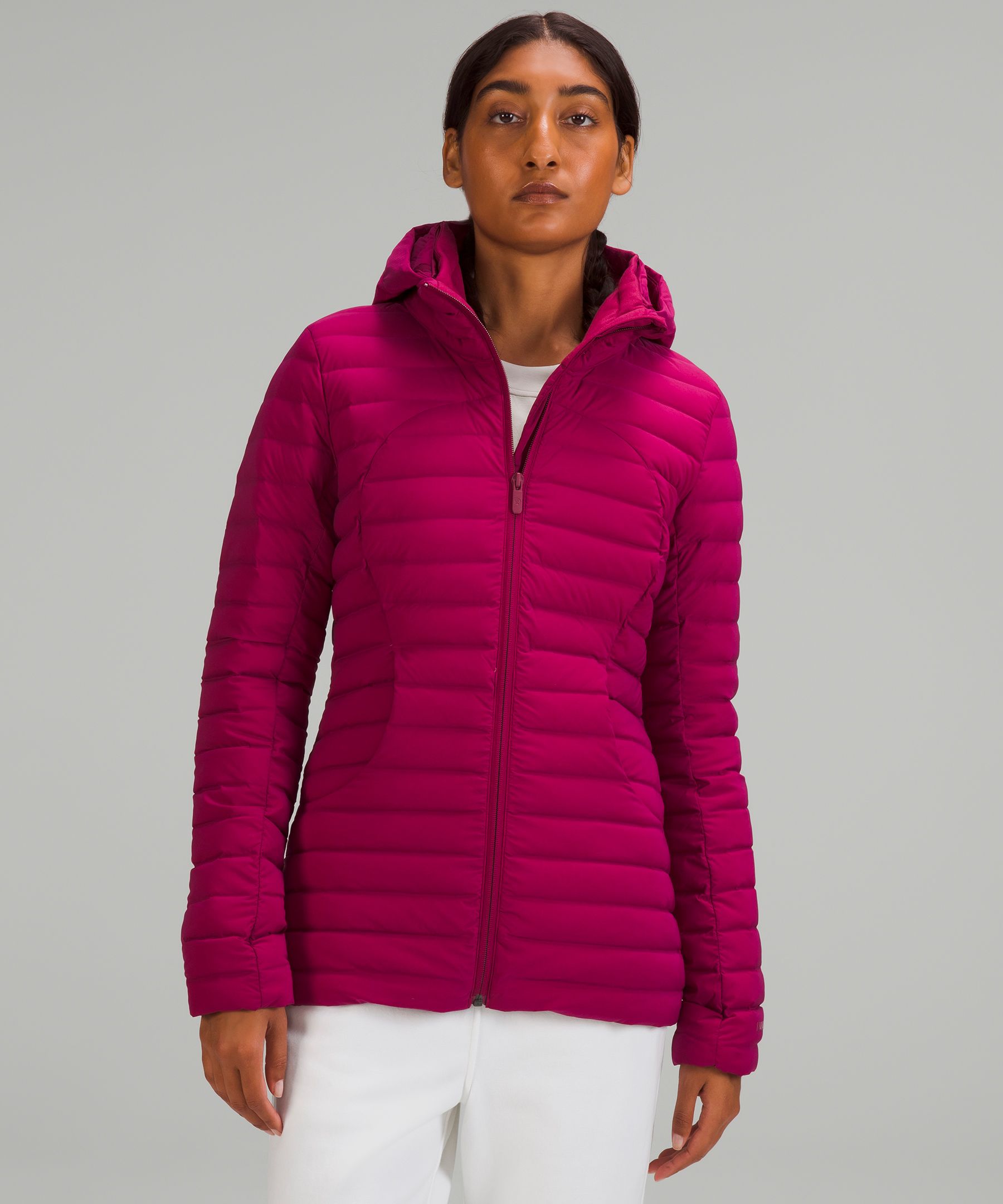 Layering season is here. Wear this packable, travel-friendly down jacket on its own or under a shell for added warmth. Designed for On the Move. Slim fit skims your body. Easy-access exterior pocket with a hidden phone sleeve. Removable hood. Removable stuff sack for easy packing. Water-Resistant, DiamondStretchTM Fabric. Knuckle side pocket: 100% Polyester. Filling: 85% White goose down, 15% White Goose Feathers. Pockets: face: 91% Nylon, 9% Elastane, coating: 100% Polyurethane. Body: 85% Nylon, 15% Elastane. Trim filling: 100% Polyester.