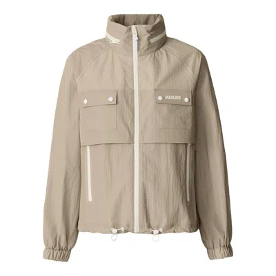 DEVORAH is a lightweight ripstop rain jacket made from recycled materials with seam-sealed construction for windy and rainy days. Water-resistant zippers, hidden hood inside the collar, and rain shedder at front and back provide extra protection for the elements. Adjustable bungee hem for a customizable fit and dual patch pockets at the chest for functionality. Rain or shine, a stylish outerwear piece.
