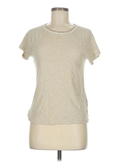 Madewell Short Sleeve T Shirt, Size: Medium. Item Details: Tan, Tweed Pattern, Mock Neckline, Short Sleeves, Zippers, Women's Tops, Cotton/Modal/Elastane
