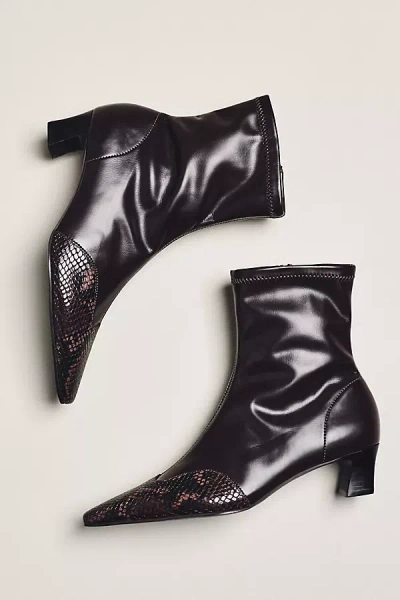 Synthetic, leather upper Leather insole Rubber sole Pull-on styling Imported Cap-Toe Stretch Ankle Boots by Maeve in Brown, Women's, Size: 41, Leather/Rubber at Anthropologie