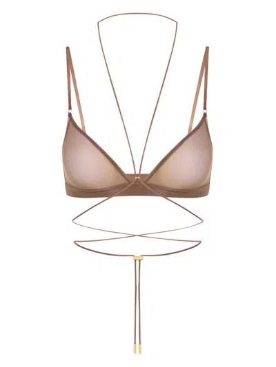 褐色 三角形罩杯 交叉背带 可调节袢带 钩扣 金色五金配件