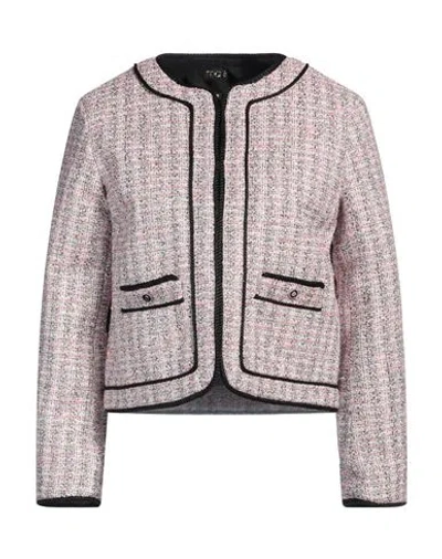 浅粉色/黑色 金属感织线 粗花呢 圆领 正面饰有钩眼扣 长袖 对比边 两个正面贴袋 摁扣开合 标志性 Lucky Four Leaf Clover 图案 平直下摆 全衬里
