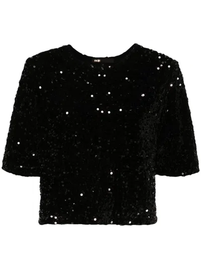 WOMENS NOIR / GRIS SEQUIN-EMBELLISHED SHORT-SLEEVE VELVET TOP