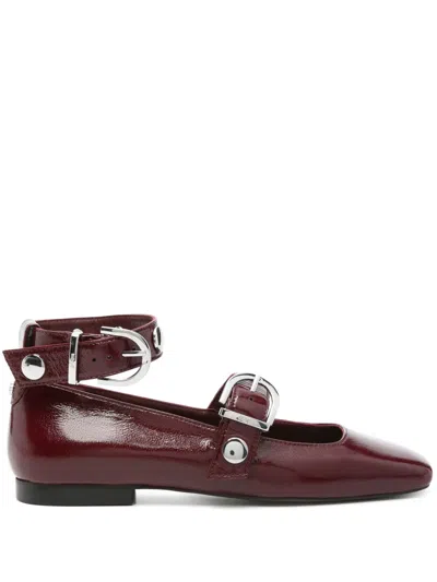 MAJE Studded Leather Mary Jane Flats In Burgundy