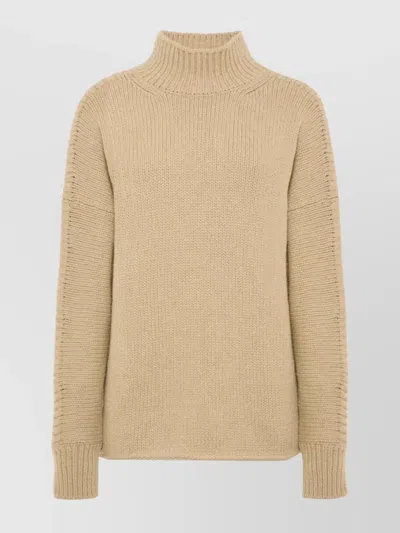 MALO Textured Knit Turtleneck Sweater With Long Sleeves In Brown