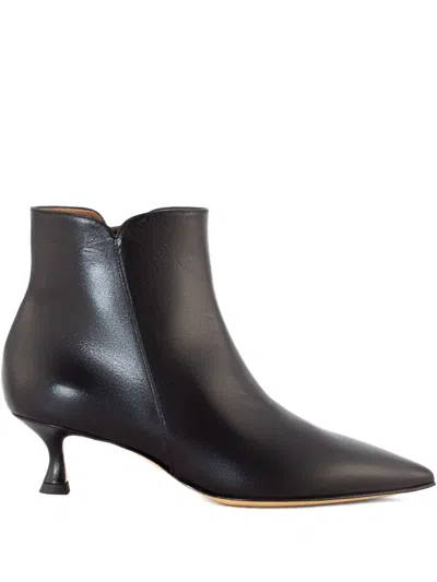 黑色 皮质 侧置拉链 低跟 尖头 鞋垫饰有标志