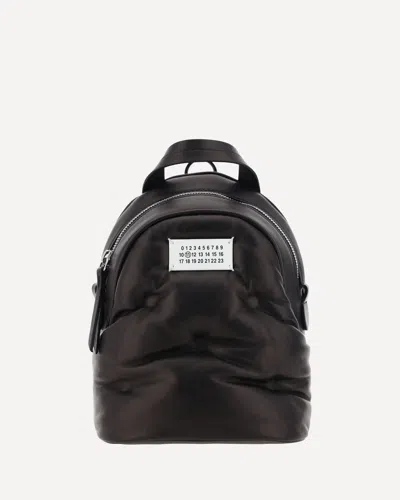 Calfskin Glam Slam Backpack by Margiela, round top handle, top closure by double-slider zipper, single-shoulder style with chain strap with leather inserts, maxi slit pocket at back, iconic contrasting embroidered brand logo patch at front, quilted and padded backpack design.Sku: S56WA0014P4300_T8013Season: AW25Dimension: 17x17x12Composition: GENERAL 100% Lamb Ovis Aries AriesMADE IN ITALY
