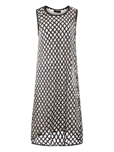黑色 亮片网布 几何花纹 圆领 无袖 平直下摆