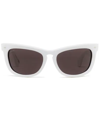 白色 醋酸纤维 猫眼镜框 灰色镜片 防UV镜片 logo雕刻镜腿 雕塑感镜腿 带弧度镜脚套 这款商品随附保护盒。