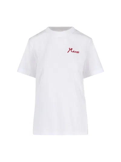 MARNI Crew Neck Short Sleeve Top With Simple Design In White