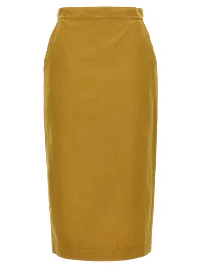 Max Mara presents a longuette sheath skirt, crafted from soft, garment-dyed cotton gabardine. The refined silhouette includes a back split for ease of movement, while practical side pockets and a discreet back zip closure enhance functionality. This skirt epitomizes sophistication, transitioning effortlessly from casual to elegant settings. Composition - 100% cotton Fit - True to size Origin - Made in Italy