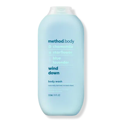 BODY WASH WIND DOWN. Benefits: Leaves skin feeling soft, hydrated, and smelling delightful.. Method Wind Down Body Wash is made without parabens or phthalates.. Smells like a tea-inspired infusion of chamomile, star flower, and blue lavender.. Key Ingredients: Chamomile contains a mixture of anti-inflammatory compounds and antioxidants. Star flower is a source of antioxidants. Blue lavender supports overall skin health. Formulated Without: Made without parabens or phthalates..