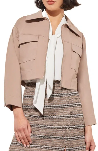 A cropped length adds a contemporary flourish to this utilitarian-inspired zip-front jacket. 17" length (size Extra Small) Front zip closure Spread collar Button cuffs Front flap patch pockets Unlined 53% nylon, 40% rayon, 7% spandex Hand wash, dry flat Imported