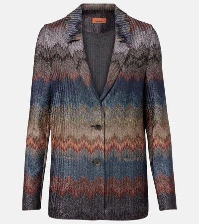blue chevron pattern notched lapel single-breasted fastening long sleeves The item you receive may differ slightly from the item photographed. This is due to the artisanal nature with which all Missoni products are constructed.. Colour. : Blue. Composition. : Viscose: 100.0%. Country Of Manufacture. : Italy. MPN. : DS25WF00BR012KS72LF. Size Family. : IT. .
