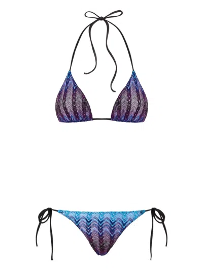 蓝色 Z字形图案围巾 三角形比基尼上装 绑带 侧系带 由于 Missoni 商品皆由手工打造,您收到的商品可能与图片所示略有不同。 请注意,试穿泳装类商品时,请穿着于自身衣物之外