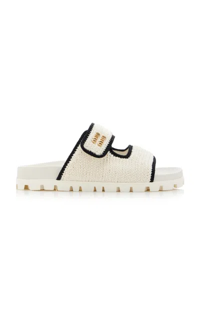 MIU MIU Bicolor Crochet Grip Slide Sandals In White