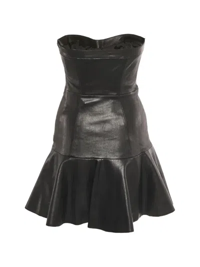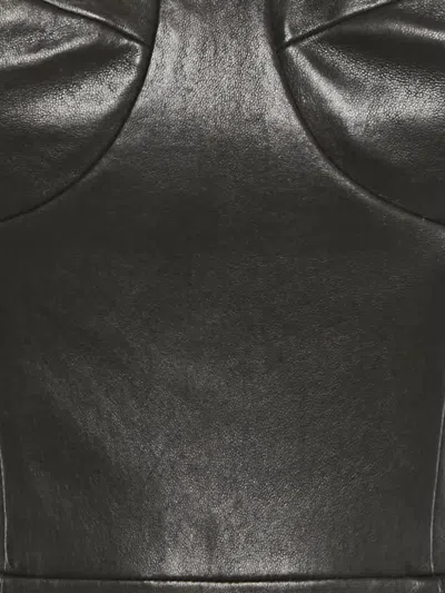 黑色 皮质 抹胸式 迷你长度 荷叶下摆 状态:很好。这款典藏臻品商品状态很好,略有使用痕迹,可能存在于材料或电镀褪色及划痕。