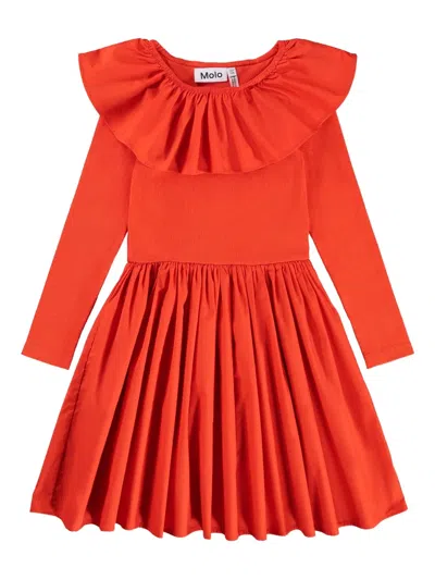 红色 荷叶边衣领 长袖 百褶