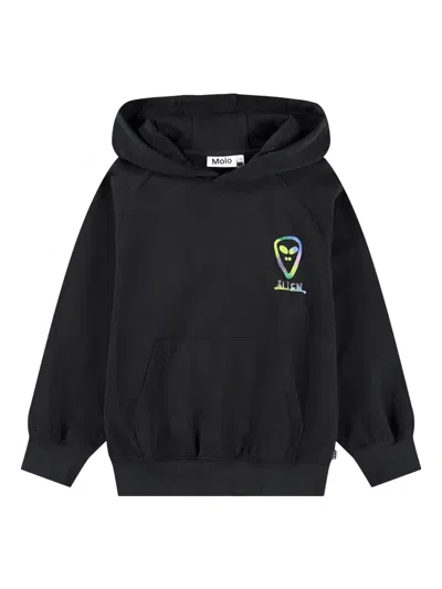 黑色 经典兜帽 长袖 罗纹袖口和下摆 胸前饰有图案印花