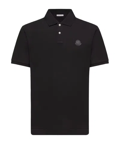 MONCLER Logo Patch Cotton Piquet Polo Shirt In Black