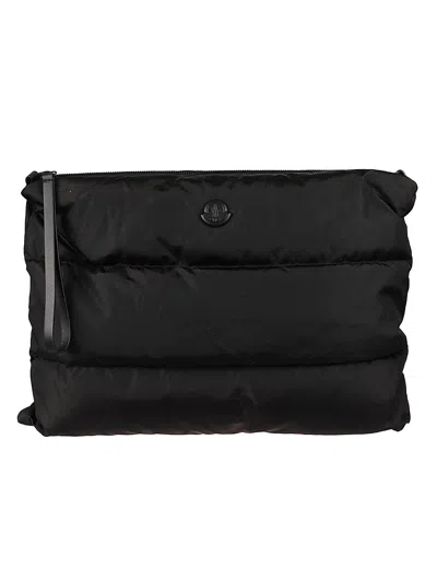Black Clutch Bags Brand. : Moncler. Color. : Black. Composition. : Outer Composition Polyamide: 100.0%, Lining Composition Polyamide: 100.0%, Lining Composition Feather: 10.0%, Lining Composition Down: 90.0%. Made in. : Italy. MPN. : M74516B00001. Height. : 28.0 centimetres. Width. : 39.0 centimetres. .