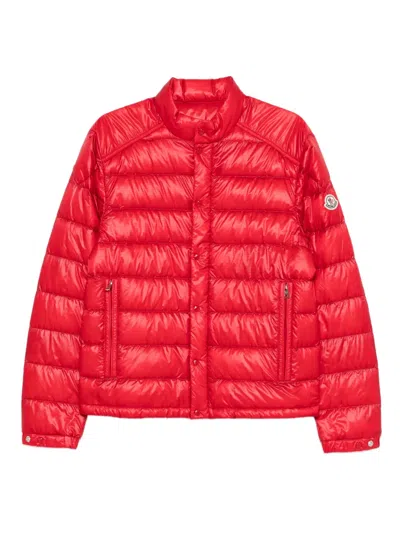 亮红色 绗缝 拉链口袋 圆领 正面纽扣 长袖
